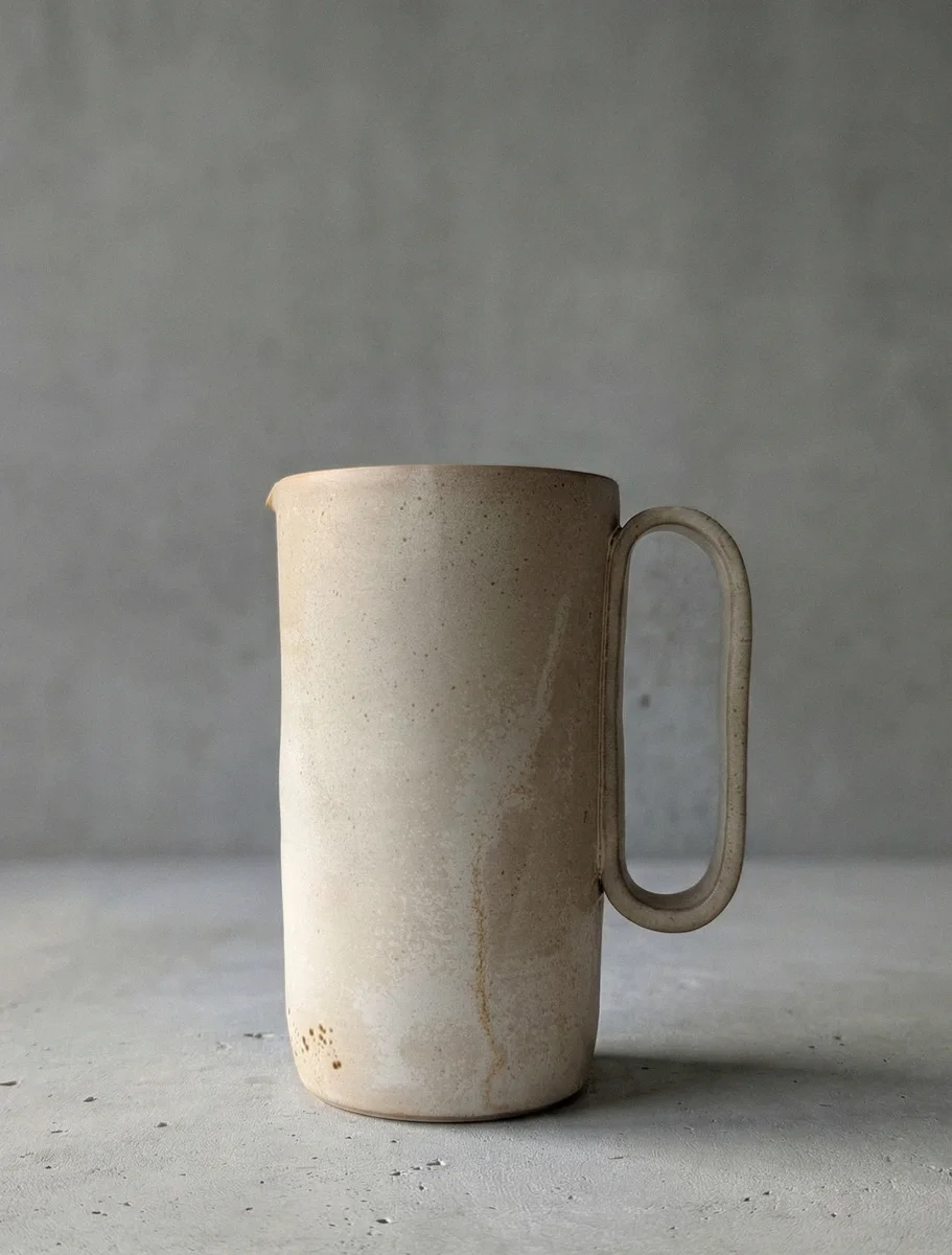 Ein Krug mit individuellem Henkel, der wegen seiner naturnahen Farben den Namen Sand auf italienisch trägt. Fassungsvermögen: circa 560ml H: 15 cm B: 8,5